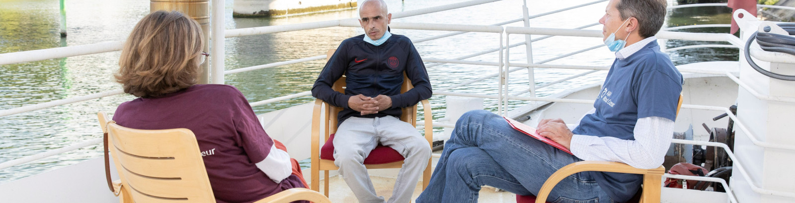 Amarré dans le 15ème arrondissement de Paris depuis 1999, le Fleuron Saint-Jean, accueille près de 50 hommes en situation de grande précarité. Orientés par le 115, ils sont dirigés vers ce CHU, pour un embarquement temporaire leur permettant, dans un premier temps, de souffler, d’avoir un toit pour retrouver une stabilité, puis de reprendre les forces nécessaires pour élaborer un nouveau projet de vie.