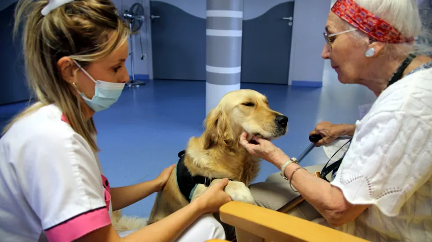 Pour maintenir au maximum les capacités langagières des personnes accueillies, l’Ordre de Malte France utilise, au sein de ses EHPAD, des méthodes novatrices : la thérapie par réminiscence, mais aussi la médiation animale. Les résidents peuvent partager des moments de douceur avec un animal de compagnie. Il peut s’agir d’échanges quotidiens, avec un petit colocataire poilu comme la chienne à la Maison Saint-Paul, mais aussi d’ateliers spécialement dédiés avec la chienne de la Maison Saint-Paul et une psychologue pour animer ces temps.