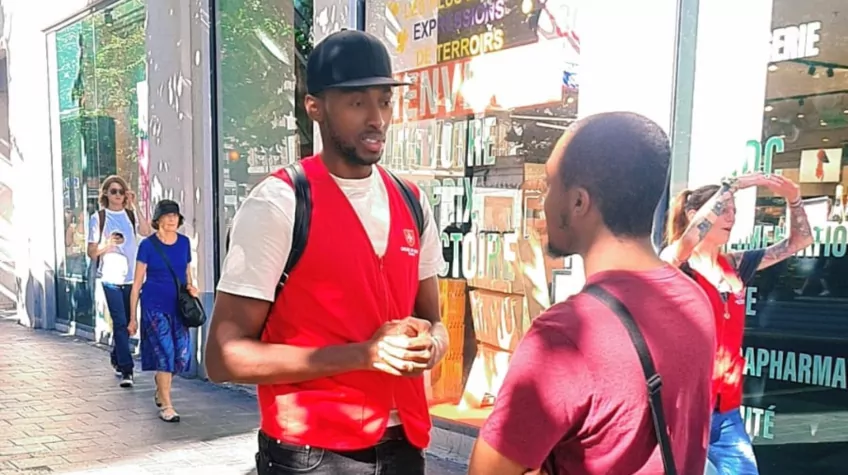Actives sur sites privés (centres commerciaux) du lundi au dimanche, de 11h00 à 20h30 et en rue du lundi au samedi, de 11h à 19h, nos équipes sont facilement identifiables grâce à un badge nominatif (avec photo) et une tenue aux couleurs de l’association (veste rouge logotée ou k-way noir).