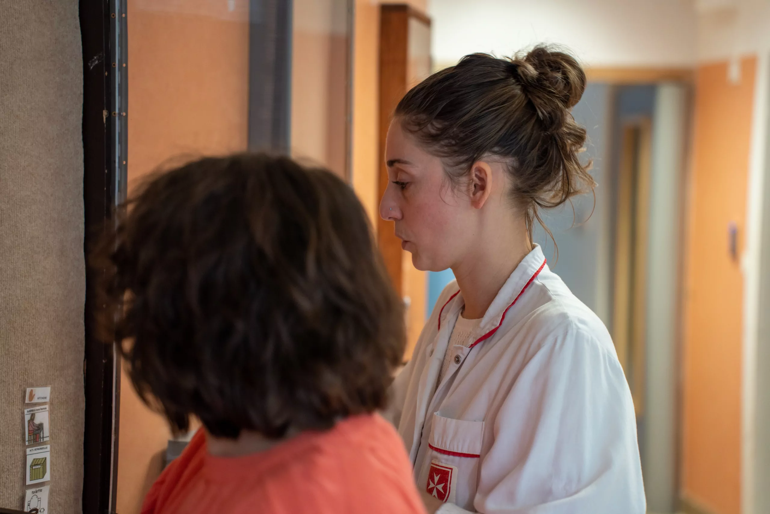 L’intervention de l’infirmière 24h/24 a pour objectif de contribuer à maintenir l’adulte dans la meilleure santé possible, à développer ou à maintenir ses acquis. La continuité de ce service infirmier permet de renforcer le rôle de coordination et de prévention médicale et paramédicale. La prise en charge kinésithérapique permet une surveillance régulière de l’état orthopédique et fonctionnel des résidents. Elle a pour but de maintenir la plus grande autonomie possible, notamment lors des transferts et des déambulations ou la réalisation de gestes spécifiques (habillage…) Sur le même registre, une ergothérapeute traite des questions de choix et d’attribution de matériels d’aide technique, le suivi des projets d’aménagements à domicile ou le suivi régulier de résidents. La psychomotricienne quant à elle, prend en compte les capacités corporelles, l’état psychique, les émotions, le rapport à l’environnement et à la vie quotidienne du résident. Enfin, une politique spécifique de lutte contre la douleur avec évaluation adaptée aux non communicants est également en place au sein de la Maison. Un psychologue intervient, aussi, auprès des résidents qui le souhaitent.
