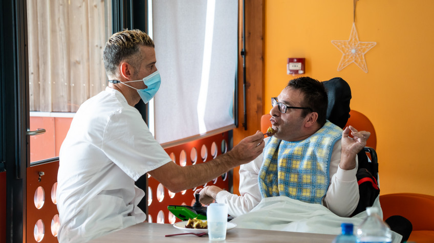 Les soins sont conduits sous la responsabilité d’un médecin généraliste et d’un médecin psychiatre assistés par des paramédicaux (infirmière diplômée d’Etat, ergothérapeute, psychologues, kinésithérapeute, orthophoniste). Le personnel, en accompagnement direct, veille à la mise en œuvre des protocoles prescrits par les médecins et coordonnés par l’infirmière. Un ergothérapeute intervient dans le champ de la communication et des apprentissages à l’autonomie. Le travail de rééducation est supervisé par un spécialiste en médecine physique libérale.