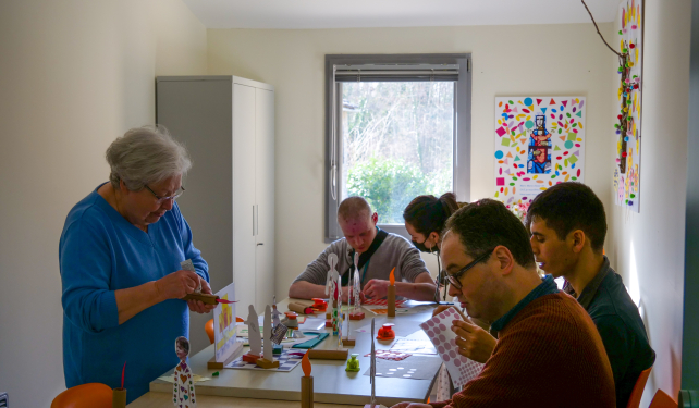 L’accompagnement de la personne est global. Une équipe pluri-professionnelle assure l’accompagnement quotidien et le suivi du Projet de Vie (PVI) qui a été défini en équipe en lien avec la famille et /ou les représentants légaux de la personne adulte autiste accueillie. Le PVI se décline dans tous les temps de la vie quotidienne en fonction des objectifs décidés conjointement et selon un emploi du temps personnalisé. Des ateliers internes ou des activités extérieures à l’institution sont proposés quotidiennement à tous les résidents par les équipes encadrantes entre 10h et 12h puis de 14h à 16h voire 17h30 pour certaines d’entre elles. Des loisirs sont proposés également le week-end.