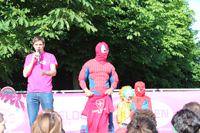 9h30 : Emeric alias Spiderman monte sur le podium pour le concours de déguisement. Mais Minnie de l’association Laurette Fugain lui vole la vedette…