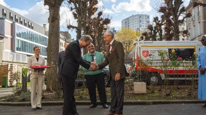 Ainsi, à l’occasion de la semaine des directeurs des établissements internationaux, dont une journée était consacrée aux ambassadeurs de l’Ordre Souverain de Malte, il reçoit cette décoration. Un signe de reconnaissance de son travail et de son engagement par l’Ordre de Malte France. La médaille lui a été remise par S.E. Fra’ Alessandro de Franciscis, le Grand Hospitalier de l’Ordre de Malte.