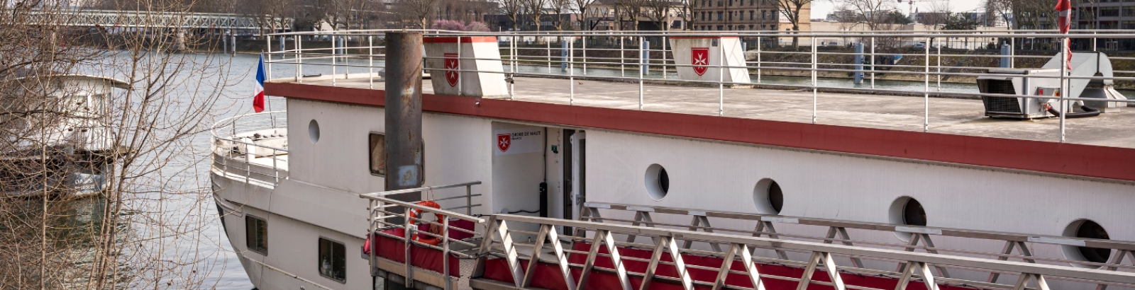 Amarré dans le 15ème arrondissement de Paris depuis 1999, le centre d’hébergement d’urgence de l’Ordre de Malte France (Fleuron Saint-Jean), accueille près de 50 hommes en situation de grande précarité. Orientés par le 115, ils sont dirigés vers ce CHU (Centre d’Hébergement d’Urgence), pour un embarquement temporaire leur permettant, dans un premier temps, de souffler, d’avoir un toit pour retrouver une stabilité, puis de reprendre les forces nécessaires pour élaborer un nouveau projet de vie.