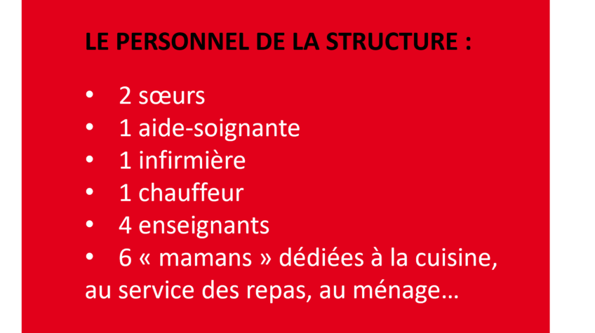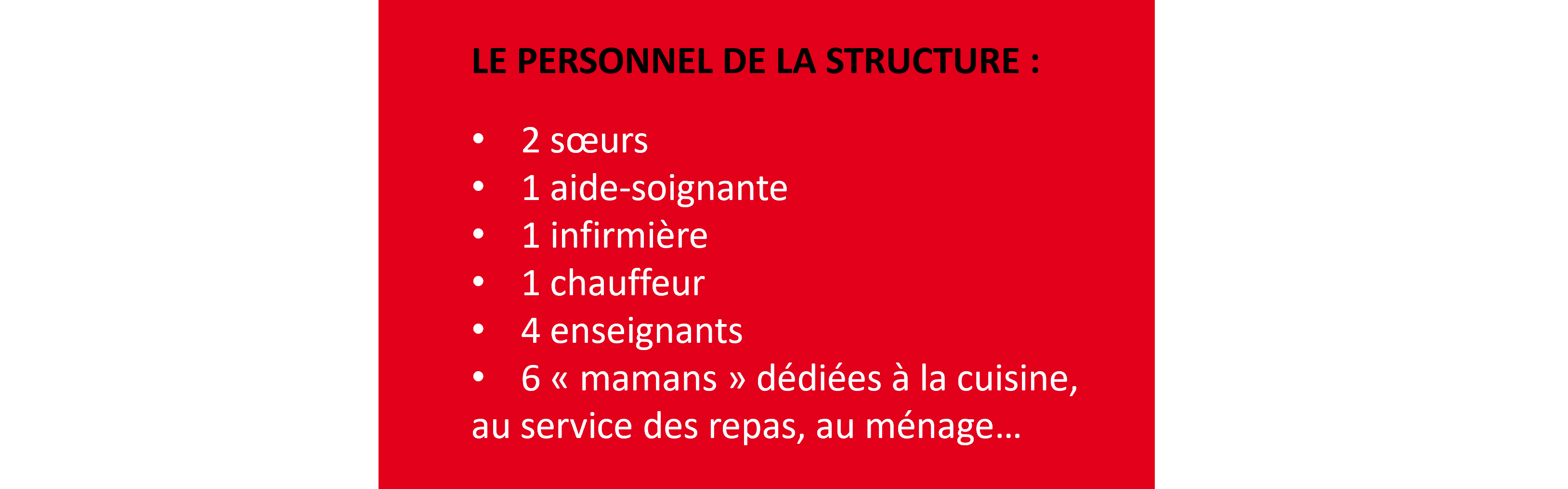 De 2 à 5 ans, l’Ordre de Malte France est l’acteur de solidarité qui intervient en grande partie auprès de l’école. Mais, à partir de l’âge de 6 ans, les enfants qui restent sont ceux qui bénéficient d’un parrainage de la part de l’Ordre de Malte France, Belgique, Allemagne, etc. Ce système de parrainage existe depuis 2007. Les enfants et adolescents peuvent ainsi être parrainés jusqu’à l’âge de 18 ans, voire au-delà pour certains qui vont à l’université grâce à cette aide.