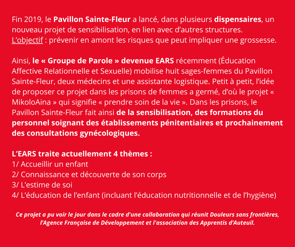 Décembre 2015 : le Pavillon Sainte-Fleur (géré par l’Ordre de Malte France depuis 1999) lance le programme de « stratégie avancée ». Le concept : une équipe médicale de l’établissement situé à Antananarivo, la capitale malgache, se rend dans une dizaine de dispensaires, en plein cœur de quartiers défavorisés. Elle prend en charge médicalement des femmes enceintes sans moyens, dépiste les grossesses à risque et pathologiques pour un accouchement sécurisé pour la mère et l’enfant dans un cadre agréable. Le Docteur Gréta témoigne.