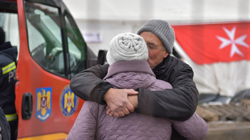 9 : Roumanie. La joie pour ce couple d’Ukrainiens de se retrouver. Leurs retrouvailles ont lieu dans un camp d’urgence géré par l’Ordre de Malte. Crédit : Malteser International