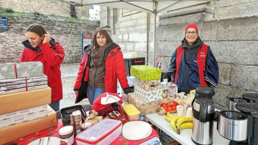 « Il est 10 h 15, dimanche 25 décembre, sur le parvis de l’église Saint-Sauveur, à Rennes, et les bénévoles de l’association l’Ordre de Malte trinquent à Noël avec Zaya* et Yvan*. Sans abri, ces deux amis sont venus profiter de cafés chauds et d’un petit-déjeuner festif. Ils croquent avec appétit dans du pain beurré, tartiné de confiture, grignotent des cookies, épluchent des mandarines et, surtout, prennent le temps de discuter. Julien Gosseaume, délégué départemental d’Ille-et-Vilaine, confie : « Ce sont des gens qu’on voit souvent, parfois depuis des années ».