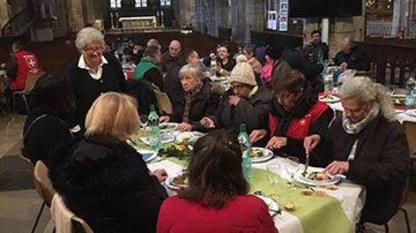 Dans le cadre des différentes actions menées par la délégation du Rhône auprès des plus fragiles, une dizaine de bénévoles ont participé au déjeuner solidaire organisé le 5 janvier dernier par l’équipe paroissiale de la Basilique Saint Bonaventure de Lyon au profit des personnes isolées.