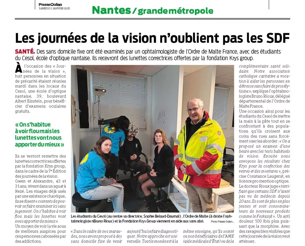 Examen de la vue, monture et verres offert aux personnes fragilisées, rencontrées lors de nos maraudes et petits-déjeuners