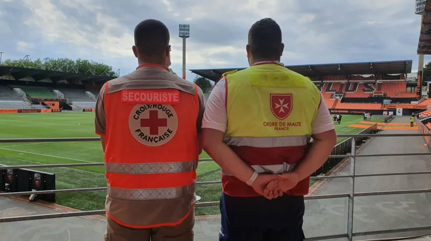 L’UDIOM56 a signé cet été un contrat annuel avec le Stade Lorientais pour sécuriser tous les matchs à domicile en interassociatif avec la Croix Rouge. Il est variable, en fonction du nombre de spectateurs dans le stade, et est conditionné par les mesures sanitaires en vigueur. Actuellement, 4 bénévoles sont mobilisés lors de chaque match pour assurer la sécurité des joueurs sur le terrain.