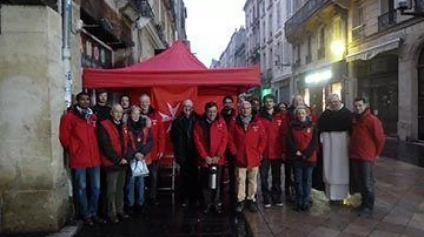 Monseigneur Bertrand Lacombe, évêque auxiliaire de Bordeaux a participé à la maraude organisée par la délégation le matin de Noël .