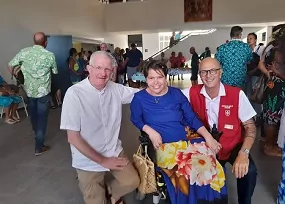 Jusqu’à 80 repas par jour peuvent être servis sur place. Jusqu’à présent, nos bénévoles assuraient la préparation et la distribution de 70 à 90 repas tous les mercredis soir, soit environ 3 500 repas par an, en lien avec le père Christophe et l’activité de l’Accueil Te Vaiete. Cette activité se poursuit désormais, au même rythme, dans les locaux du nouvel Accueil Te Vaiete. « Nos invités sont à table avec de vrais couverts, que chacun doit laver et ranger ensuite. Nous pouvons ainsi passer plus de temps avec les personnes à la rue et, suivant le nombre de bénévoles, nous en disposons un par table pour avoir un instant plus convivial », détaille Florent. Pour disposer des denrées nécessaires à la confection de ces repas, nos bénévoles organisent régulièrement des collectes : la dernière date de fin mars. Par ailleurs, des médecins bénévoles consultent tous les jours dans les deux cabinets qui sont à leur disposition. Le délégué ne compte pas s’arrêter là. Son équipe couture, qui réalise depuis plusieurs années des couvertures en paréo, des calots, des masques (Covid19)… pour les services hospitaliers de Tahiti, pourrait, d’ici quelque temps, apporter son aide dans des ateliers de couture au sein de l’Accueil… et soutenir ainsi la réinsertion des personnes accueillies.