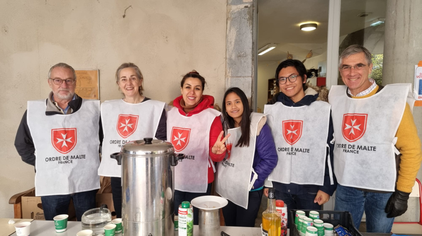 Ce n’est évidemment pas la seule activité de la délégation, qui participe à toutes les quêtes de l’Ordre de Malte France. « C’est un bon moyen de se faire connaître, explique Nadège de Noue. Après la dernière campagne « Deux jours pour donner », une adjointe en pastorale a demandé à ses élèves de faire des cadeaux de noël. Nous les avons distribués à nos invités du dimanche, ils étaient ravis ! En les complétant d’ailleurs avec des papillotes données par la Société Saint-Vincent-de-Paul, avec laquelle nous avons de bons rapports et espérons signer bientôt une convention de mise à disposition de leurs locaux, au cœur de Grenoble, une à deux fois par semaine. Cela permettrait à la délégation d’avoir une permanence et d’être plus visible ! » La déléguée est enfin particulièrement attentive à maintenir la cohésion au sein de ses bénévoles. Plusieurs pots sont organisés pour eux, après la messe mensuelle à la cathédrale célébrée par l’Abbé Troesch– « ça nous permet de recruter de nouveaux bénévoles » – et après les quêtes, ainsi qu’un dîner de fin d’année en juin. Et si l’an dernier, la délégation était représentée par 5 bénévoles au pèlerinage international de l’Ordre de Malte à Lourdes, ils seront 12 cette année, se réjouit la déléguée !