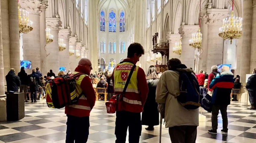 « C’est un beau cadeau de Noël en avance ! » Les bénévoles de l’Ordre de Malte France se sont associés à toutes les manifestations qui ont marqué cette réouverture. Dès le 15 novembre, 6 secouristes ont assuré le poste de secours de la procession de retour « à la maison » de la fameuse Vierge au Sourire, depuis l’église Saint-Germain-l’Auxerrois, où elle avait trouvé refuge après l’incendie.