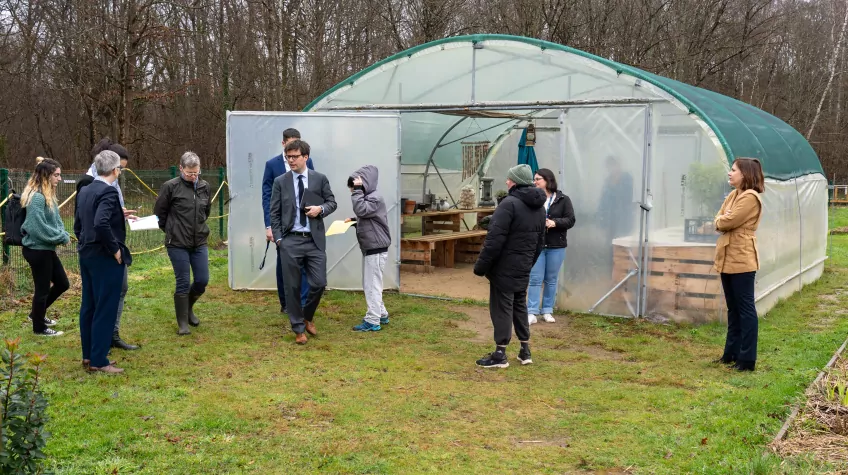 Étienne Pot s’est rendu auprès d’une unité de vie où il a discuté avec plusieurs personnes accueillies et accompagnants ou professionnels socio-éducatifs. Il a également visité les parties extérieures de l’établissement comme le jardin thérapeutique, la ferme pédagogique, etc.