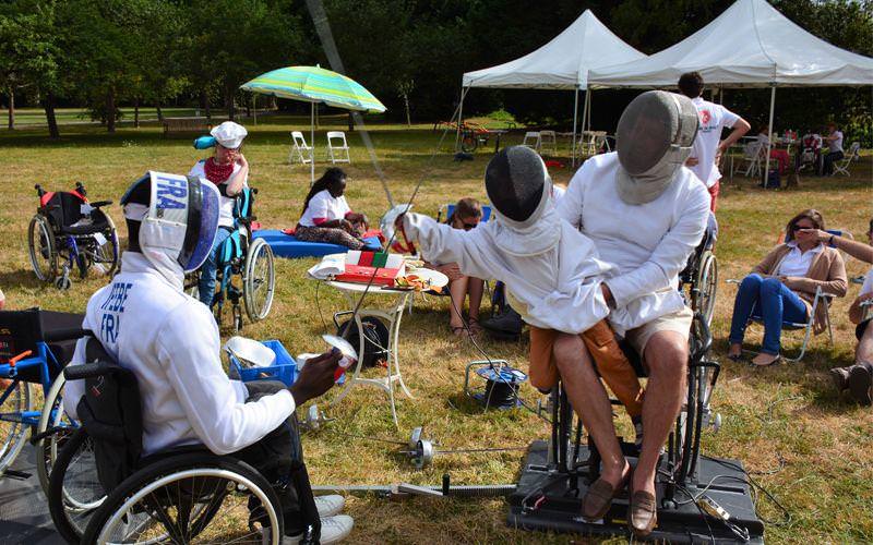 Photo : Lors du camp d’été national 2017 en Normandie, Yannick fait profiter les bénéficiaires de ses talents d’épéiste – © H. d’Esneval / Ordre de Malte France