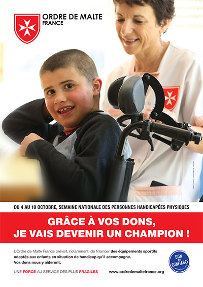 Le matériel et les équipements spécifique à la pratique d’un handisport représentent de manière générale des coûts conséquents. C’est pourquoi, l’Ordre de Malte sollicite cette année la générosité du public pour contribuer au financement d’équipements sportifs adaptés aux enfants : ballons, fauteuils, raquettes, gants… tout le matériel pour sportifs valides a son pendant en handisport… à condition d’y mettre le prix.