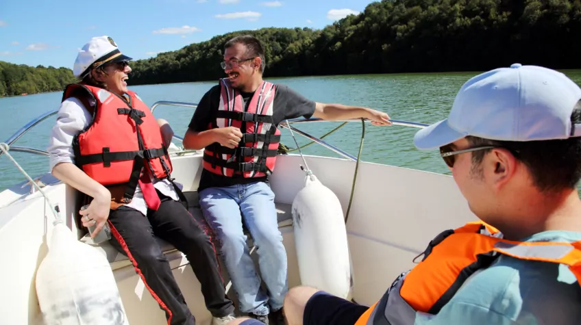 En ce beau dimanche de septembre, la météo est idéale pour permettre à la journée annuelle Handilac de se dérouler sous les meilleurs cieux. Tout au long de cette journée de découverte des sports nautiques, cinq bénévoles de la délégation de Loire-Atlantique sont présents aux côtés des associations Loire Activités Création et de la Fondation 3A. Tous ensemble, ils accompagnent 5 personnes en situation de handicap et 12 personnes vivant avec autisme, accueillies dans différents centres spécialisés de la région.