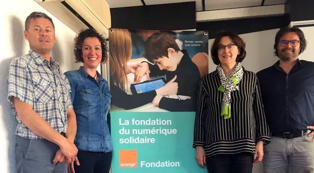 De gauche à droite : Loïc SURGET (Maison Notre Dame de Philerme – Ordre de Malte France), Lara TERNOVSKY (Dispositif Horizon – AAPEI Epanou), Nicole JOULIA (Fondation Orange), Laurent RUDELLE (Samsah A3A – LADAPT 74)