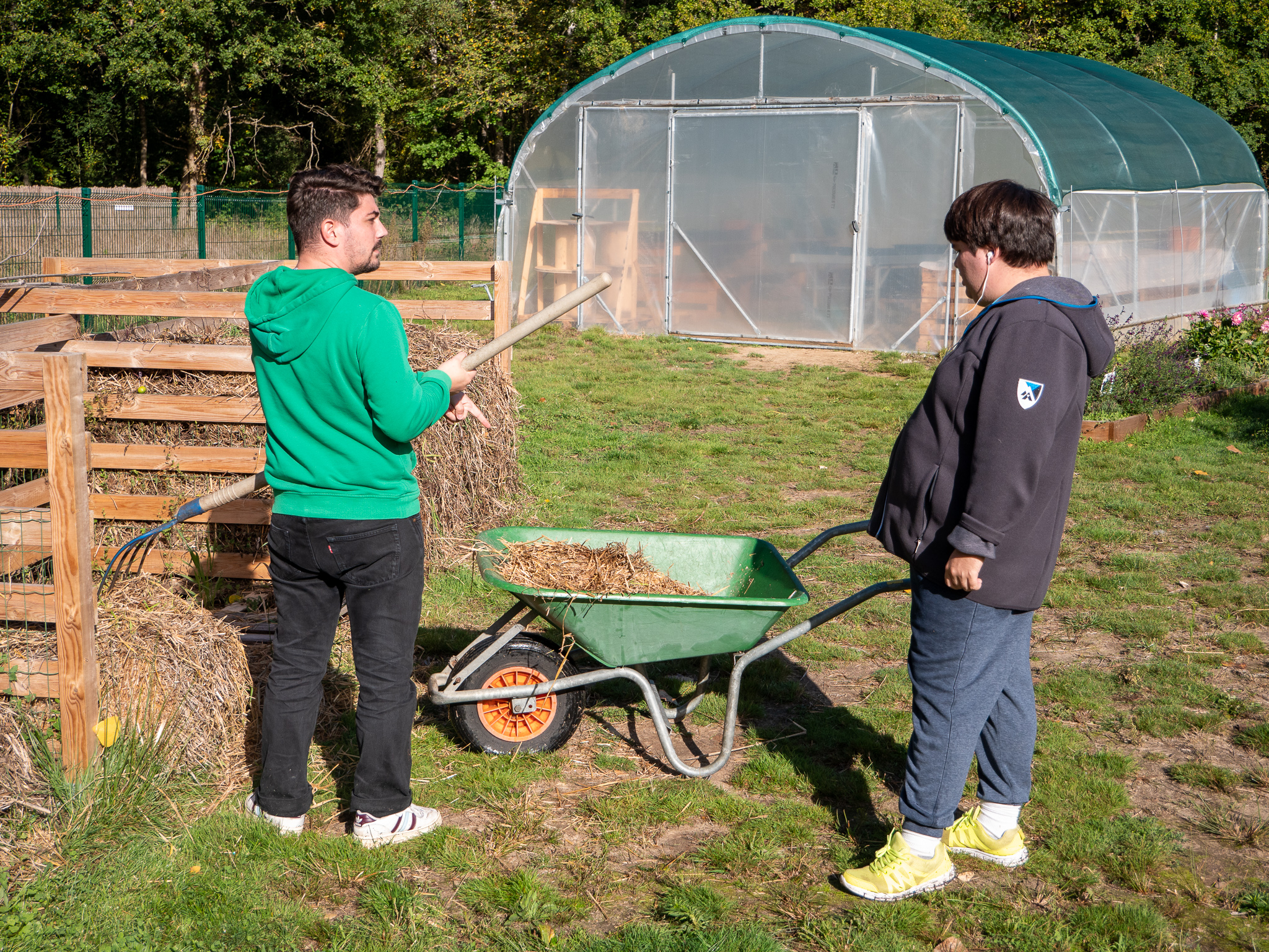 Au quotidien, l’accent est mis sur la relation et la reconnaissance de la personne dans une perspective d’autonomie optimale. Aurélien Bourdeau explique que l’établissement privilégie « des activités matricielles structurantes, avec une recherche de plus de sens derrière chaque support socio-éducatif ». Donner à la personne un rôle et/ou une utilité sociale est l’un des moyens lui permettant d’acquérir une meilleure estime d’elle-même. Dans cette optique, les activités proposées sont nombreuses et variées : ferme pédagogique et médiation animale, jardin thérapeutique, activités corps et santé et arts et expressions… « L’objectif du jardin est de développer la psychomotricité des résidents, pour faciliter leur quotidien, La permaculture joue ainsi un rôle fondamental dans le processus d’inclusion » explique Dorothée, en charge du projet permaculturel.  Autre exemple : les ateliers cuisine, qui permettent de travailler l’autonomie, la responsabilisation, le plaisir de manger et tout ce qui relève du sensoriel, du goût, de la texture… »