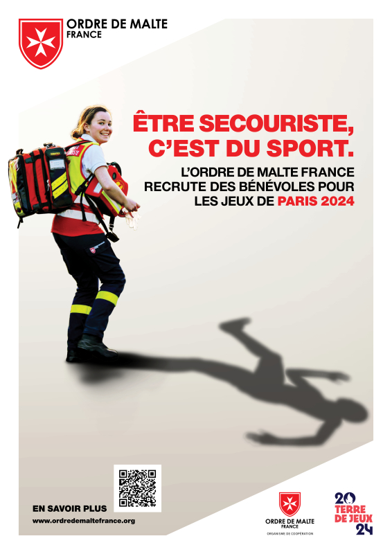 Association agréée de Sécurité Civile, l’Ordre de Malte France fait partie des acteurs engagés sur les Jeux de Paris 2024, et ce depuis la signature du label « Terre de Jeux », en septembre. L’Ordre de Malte France est désormais un organisme de coopération, par le biais de ce label. Pour assurer l’ensemble des postes de secours sur lesquels elle est mobilisée, l’association recrute, de nouveaux bénévoles, aux profils variés. Candidats intéressés, sérieux et motivés : bienvenue ! L’Ordre de Malte France s’engage à les former d’ici avril prochain.