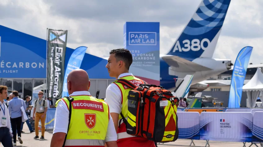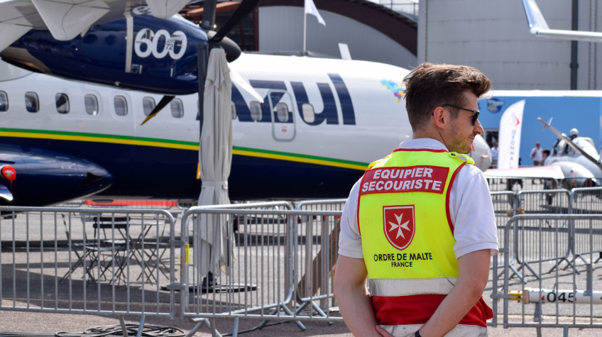 Avec 300 000 visiteurs cumulés, et une surface de 60 hectares, le Salon International de l’Aéronautique et de l’Espace (SIAE) est le plus gros événement sur lequel les secouristes et les logisticiens de l’Ordre de Malte France travaillent depuis une quinzaine d’année. Il exige, en effet, une préparation très en amont, et un sans-faute sur toute la durée du Salon.