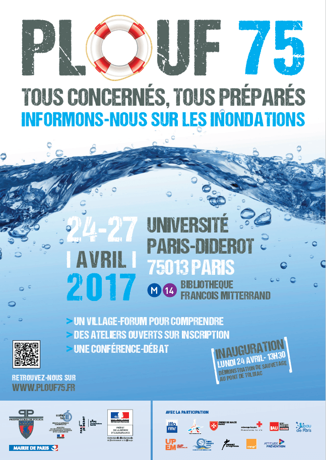 En ce sens, cette quatrième édition de PLOUF 75 propose au jeune public, aux étudiants et personnels de l’Université Paris-Diderot un village-forum pédagogique, une conférence-débat, des démonstrations de sauvetage, des ateliers de formation… L’objectif ? Mieux comprendre le risque de crue et savoir réagir de manière adaptée.