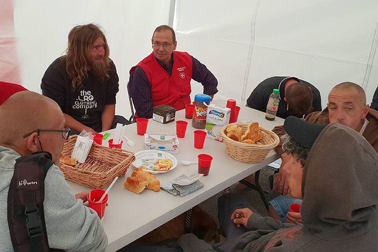 À cette action hivernale s’est ajoutée ce mois-ci sa déclinaison estivale, cette fois-ci sous tente sur le parvis de la cathédrale de Gap. Il s’agit du premier petit déjeuner solidaire mis en place durant l’été par l’une de nos délégations