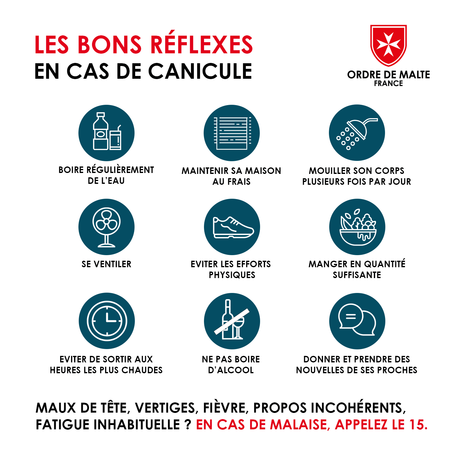 Lors du déclenchement de l’alerte canicule par la Préfecture, les équipes de l’Ordre de Malte France dans les délégations peuvent être mobilisées, en lien avec d’autres acteurs de la solidarité :