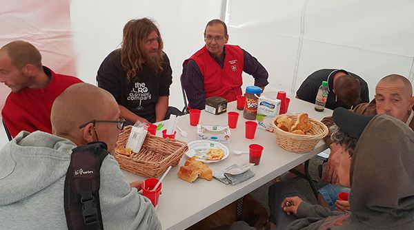 Le premier petit déjeuner du dimanche de l’Ordre de Malte France à Gap a eu lieu le dimanche 27 mai. « Ici, explique Michel Casorla, le délégué, il n’y a rien en faveur des personnes démunies ou isolées le week-end. Nous avons donc décidé d’agir. Je peux vous dire que les premiers retours sont très positifs : nos invités sont heureux d’avoir un lieu où se retrouver dans une atmosphère conviviale en fin de semaine. Les transports en commun ne fonctionnent pas dans la ville le dimanche et nous avons pourtant accueilli 18 personnes, qui se sont donc déplacées. Le bouche-à-oreille a bien fonctionné et tous étaient motivés, il y a une vraie demande ! » Deux ou trois invités sont même arrivés dès 8 heures, pour aider les bénévoles à tout installer. « Ils nous ont donné un bon coup de main », raconte Michel. Concrètement, comment le projet a-t-il pris forme ? « Nous avons organisé cet hiver des collectes dans les paroisses de la ville qui nous ont permis de financer 90% de l’achat d’une toile de tente pour abriter nos petits déjeuners. Deux boulangeries locales partenaires nous fournissent près de 60 viennoiseries fraîches tous les dimanches. Les consommables (café, thé, gâteaux, gobelets en plastique, etc) sont généreusement apportés par les paroissiens et les dons continuent d’affluer après les offices du week-end ! Bref, nous sommes en « auto-suffisance », pas un centime n’a été dépensé ! Nous avons également récupéré le matériel, type percolateur ou autre, des petits déjeuners d’Aix, qui s’arrêtent pendant l’été. Nous le leur rendrons en septembre, c’est un bon exemple d’entraide entre délégations ». Le 3 juin, nos bénévoles accueilleront un invité de marque, en la personne de l’évêque.