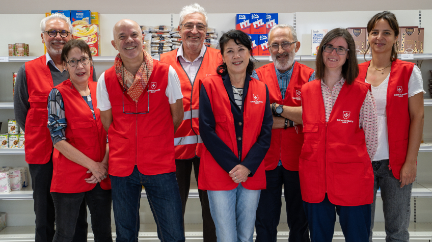 « Nos bénéficiaires sont plus jeunes que ce à quoi je m’attendais, 40 à 50 ans en moyenne, et ce sont surtout des femmes, dont beaucoup victimes d’accidents de la vie (professionnels, médicaux…). », constate Alain Béranger. L’équipe de bénévoles présente accueille jusqu’à 6 personnes par après-midi. Tous ont été formés par le siège de l’association sur la sécurité alimentaire. Sont proposés : des produits frais, secs et non-alimentaires (hygiène corporelle et produits ménagers), ainsi que, parfois, des articles de puériculture. Ces stocks sont fournis par la Banque Alimentaire, le réseau ANDES[1], l’Agence du don en nature et des achats financés par la délégation grâce à des subventions (mairie, département, mécénat…).