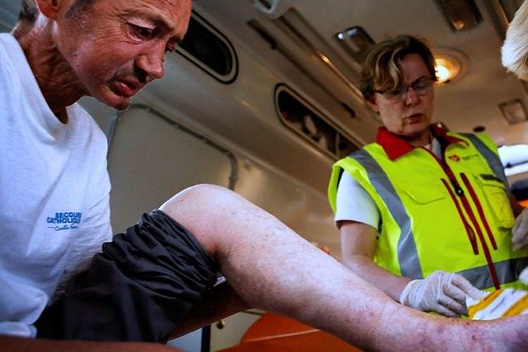 Une personne sans abri reçoit un soin durant une maraude médicale © D. Ravier / Ordre de Malte France