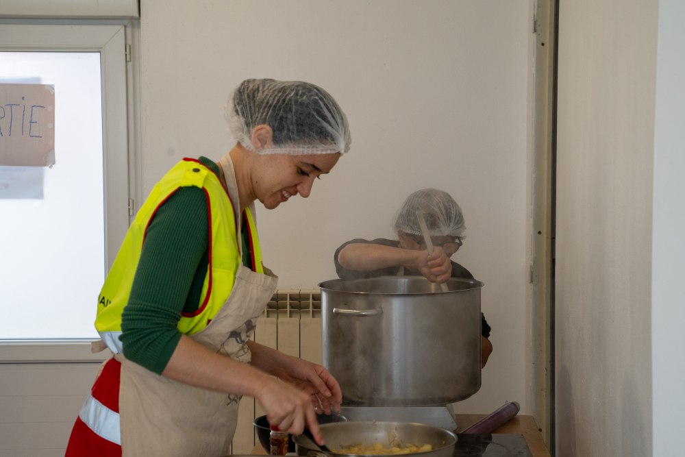 Au menu : œufs mimosas, blanquette de poulet et dessert caramélisé ! Un vrai plaisir pour les papilles. Vers 13h, de nouveaux bénéficiaires ont rejoint le reste de l’équipe pour partager le repas.
