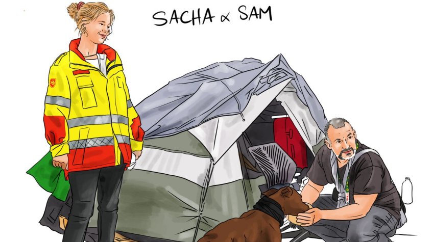 C’est lors d’une maraude à bord de l’un des véhicules de l’association que Claire a fait ses premiers pas aux côtés des bénévoles de l’Ordre de Malte France. Ensemble, ils ont rencontré des personnes dans la rue, notamment Sacha, dont le parcours de vie est poignant, et son chien Sam. Inspirée par cette première expérience de bénévole, Claire a traduit ces instants en un dessin : Gaétane, bénévole, et Sacha et Sam, les yeux empreints de gratitude, dans un moment suspendu. Cette illustration, partagée sur ses réseaux sociaux, a touché des milliers de personnes, donnant à voir la réalité et la beauté des liens créés lors de ces maraudes.