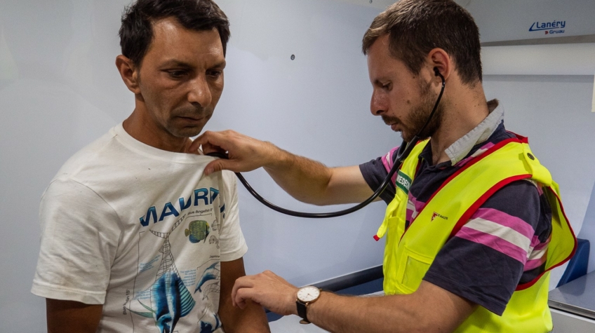 Sur le terrain, les pathologies les plus courantes sont : les problèmes cardio-vasculaires, les douleurs dorsales et des infections diverses, souvent liées à un manque d’hygiène. L’équipe oriente alors les personnes concernées vers des services plus spécialisés (ophtalmologie, soins dentaires…).