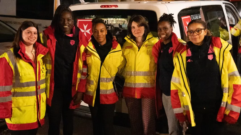 Mardi 14 février 2023. Pour les 8 joueuses du Stade français réunies ce soir-là sur le parking du siège de l’Ordre de Malte France (Paris 15e), l’ambiance n’est pas à la Saint-Valentin. Pour la plupart d’entre elles, pour la première fois de leur vie, elles vont se confronter à un tout autre terrain que celui qu’elles pratiquent au quotidien : celui de la rue, de l’isolement et de l’hyper précarité.